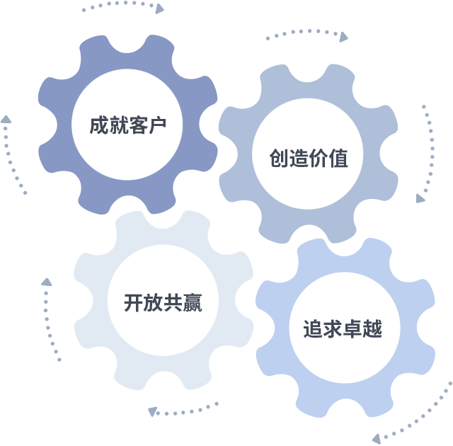 成就客户是一切决策的出发点,创造价值是衡量所有工作的标准,追求卓越是酷游平台ku111做事做人的态度,开放共赢是酷游平台ku111的格局也是最终的结果。价值观的齿轮环环相扣,推动着组织里的每个人不断向前。
